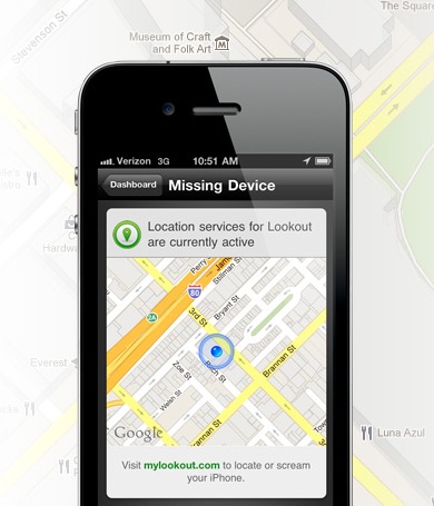 - Dispositivo perdido: Lookout puede encontrar fácilmente su dispositivo en un mapa y hacer sonar una alarma para que, si está en algún lugar cercano, pueda encontrarlo.