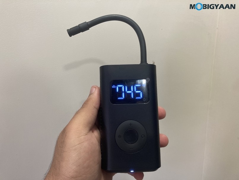 Los usuarios también pueden configurar manualmente los valores de PSI usando el botón "+" y "-" en el dispositivo. Sube a 145 PSI como máximo y también le muestra el valor de PSI cuando lo conecta con un neumático o una bola para llenar el aire. De forma predeterminada, el ajuste preestablecido para Coche y Vehículo de dos ruedas le muestra los valores en la barra, pero mantener presionado el botón de la derecha puede ayudarlo a cambiar eso. Una vez que se establece el valor, los usuarios pueden comenzar a llenar de aire presionando el botón central en el compresor de aire eléctrico portátil Mi. Al igual que los otros infladores de aire portátiles, también hace un ruido fuerte cuando llena el aire de un vehículo.